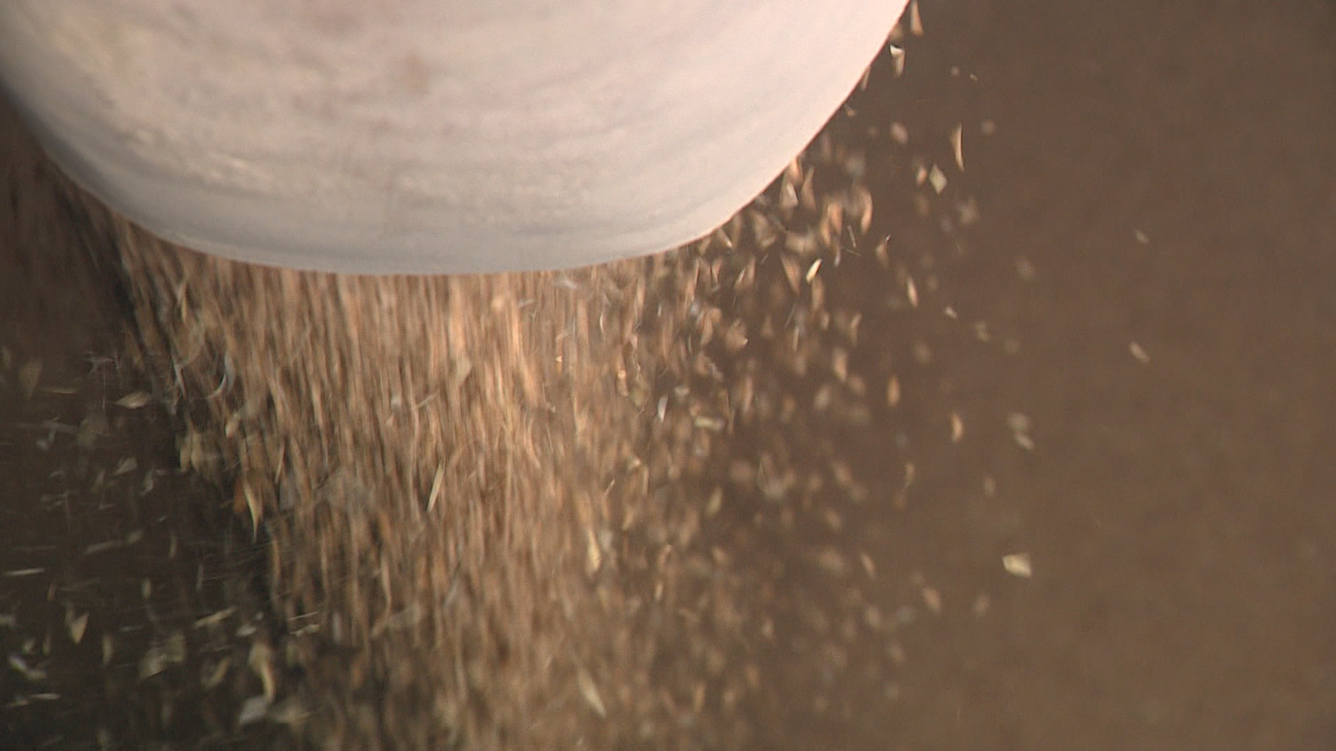 Пара минут и 20 тонн пшеницы оказываются в вагоне. Загружают зерно партиями. На заполнение уходит не больше 40 минут. Вес каждого вагона строго определен – 75 тонн. Выходить за рамки запрещено. Контролируют процесс заполнения составов несколько специалистов.