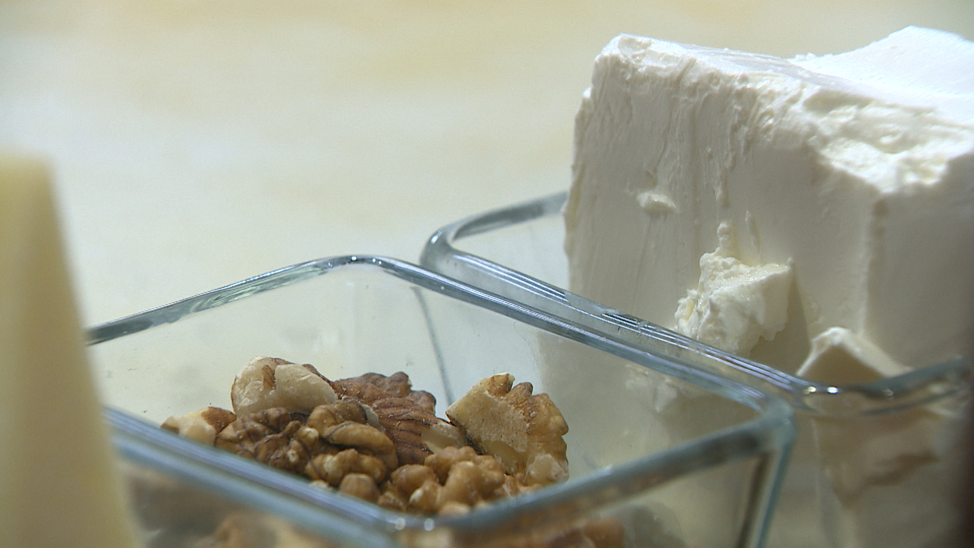 Теперь приготовим начинку для нашего фаршированного цветка – берем творожный сыр, добавляем в него специи по вкусу. В нашем случае это сушеный тархун и вяленый томат.