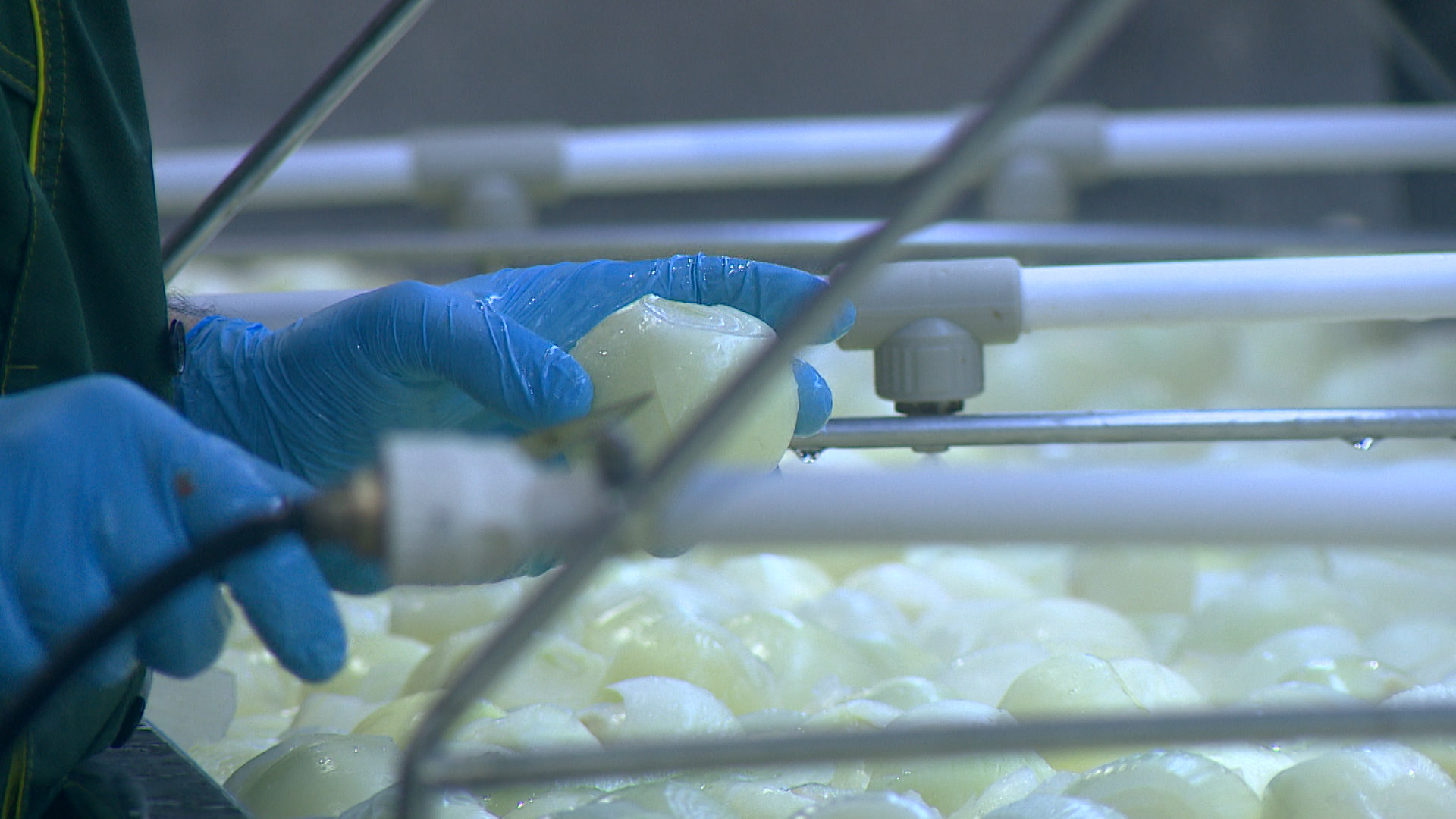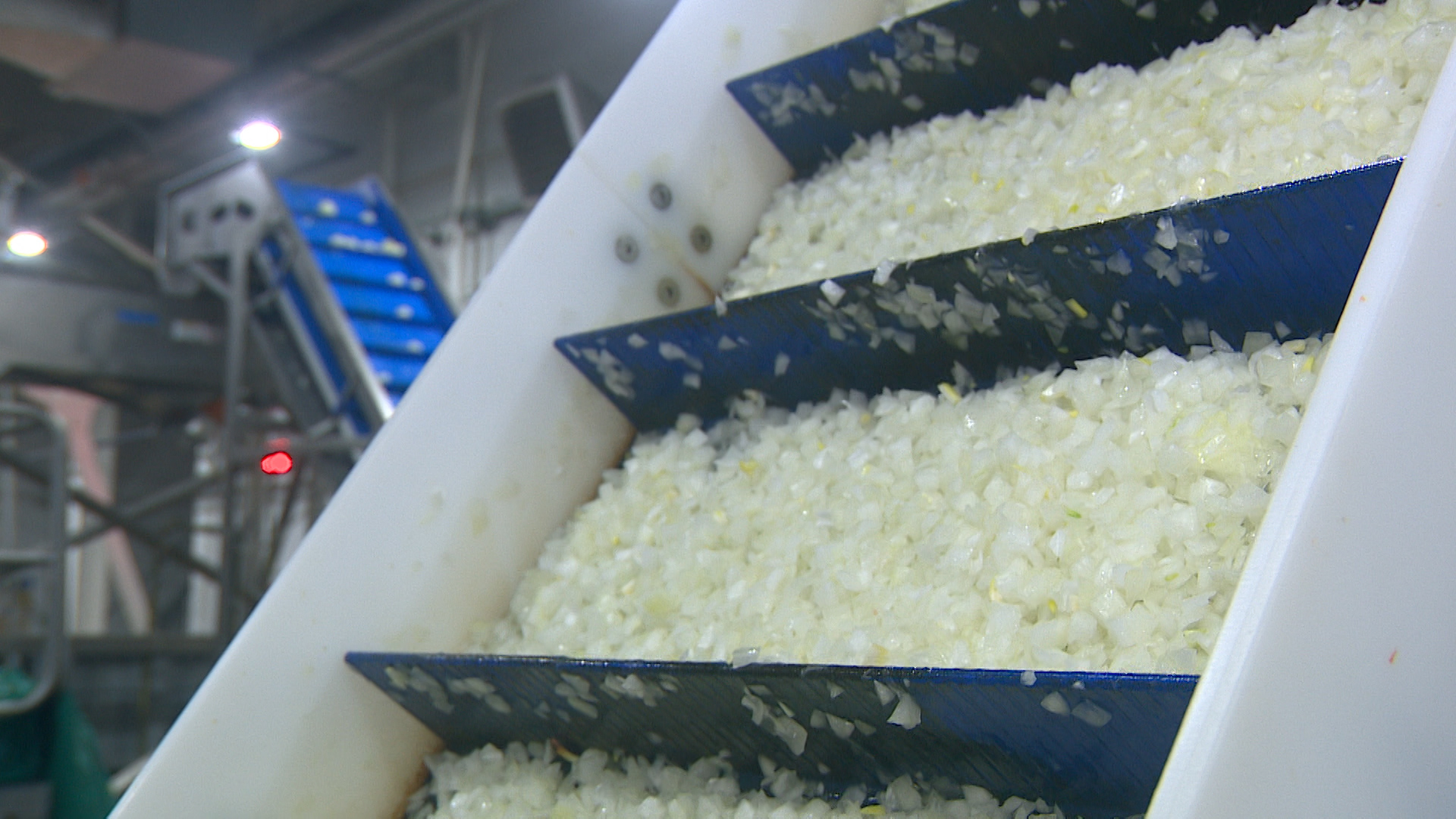 Побывать здесь – все равно, что получить профилактику от простуд. Лук окружает нас буквально со всех сторон. Люди могут здесь работать даже без масок. При том что предприятие не останавливается за целый день.