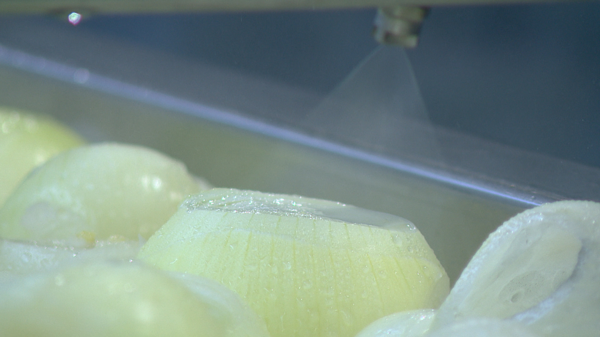 Более 10 тысяч тонн – столько на предприятии могут переработать за один год. Современный завод делает из обычных овощей замороженные. В основном производство автоматизированное. Одновременно работает четыре линии. Овощи чистят, моют, калибруют, измельчают.