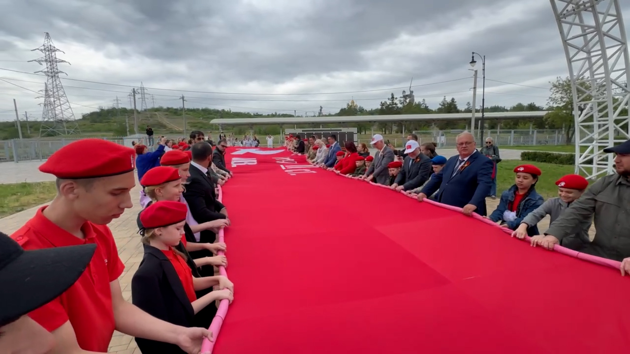 В Волгограде состоялась акция «Знамя Победы». На главной высоте России развернули масштабное полотно.