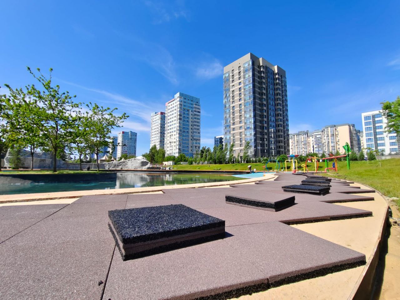 Рабочим также предстоит оборудовать раздевалки, душевые кабины, туалеты, навесы от солнца и шезлонги. Для юных посетителей готовится к открытию спрей-зона с разными фонтанами.